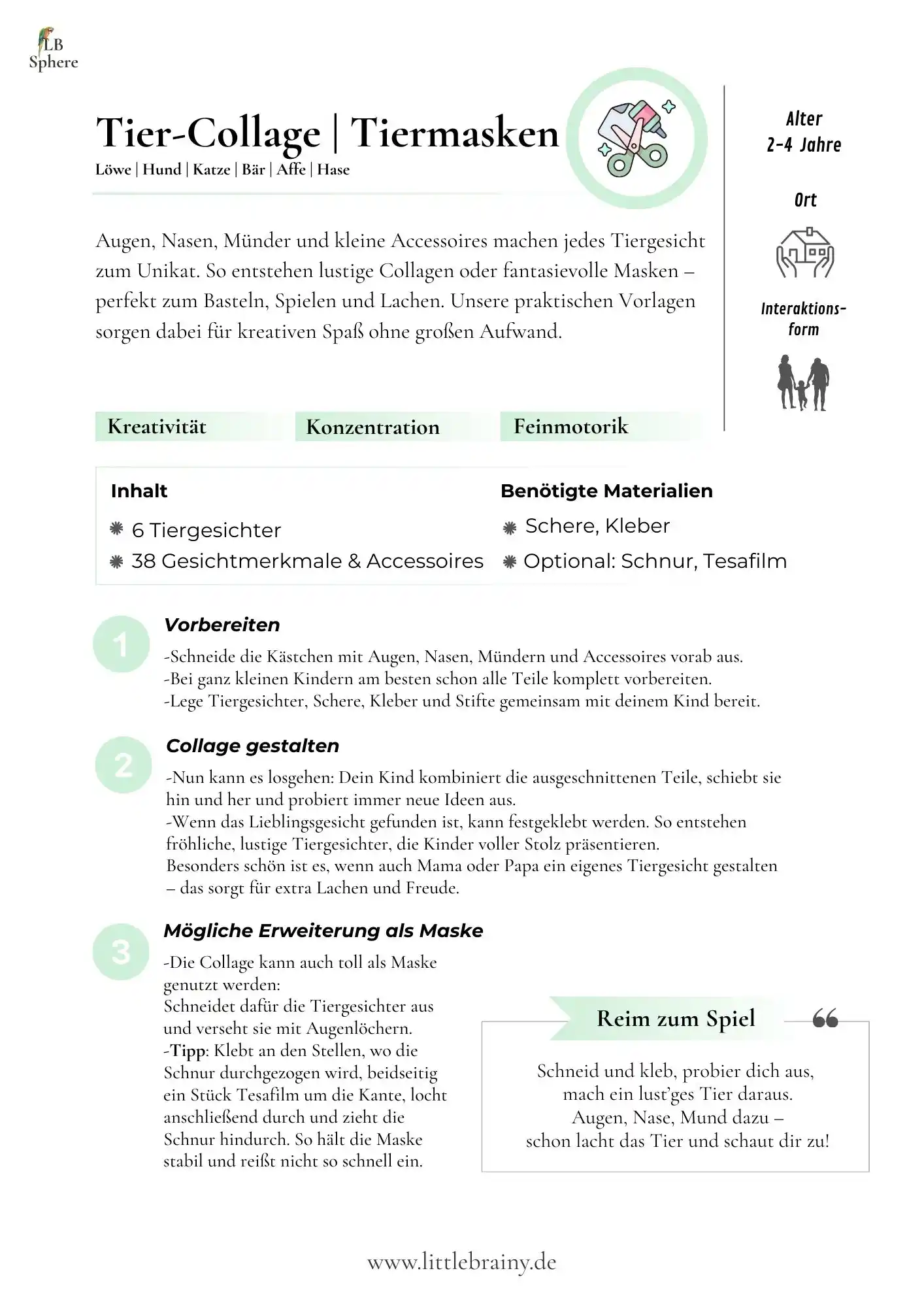 Tierbilder und Masken basteln für die Kleinsten | PDF Vorlagen zum Ausdrucken