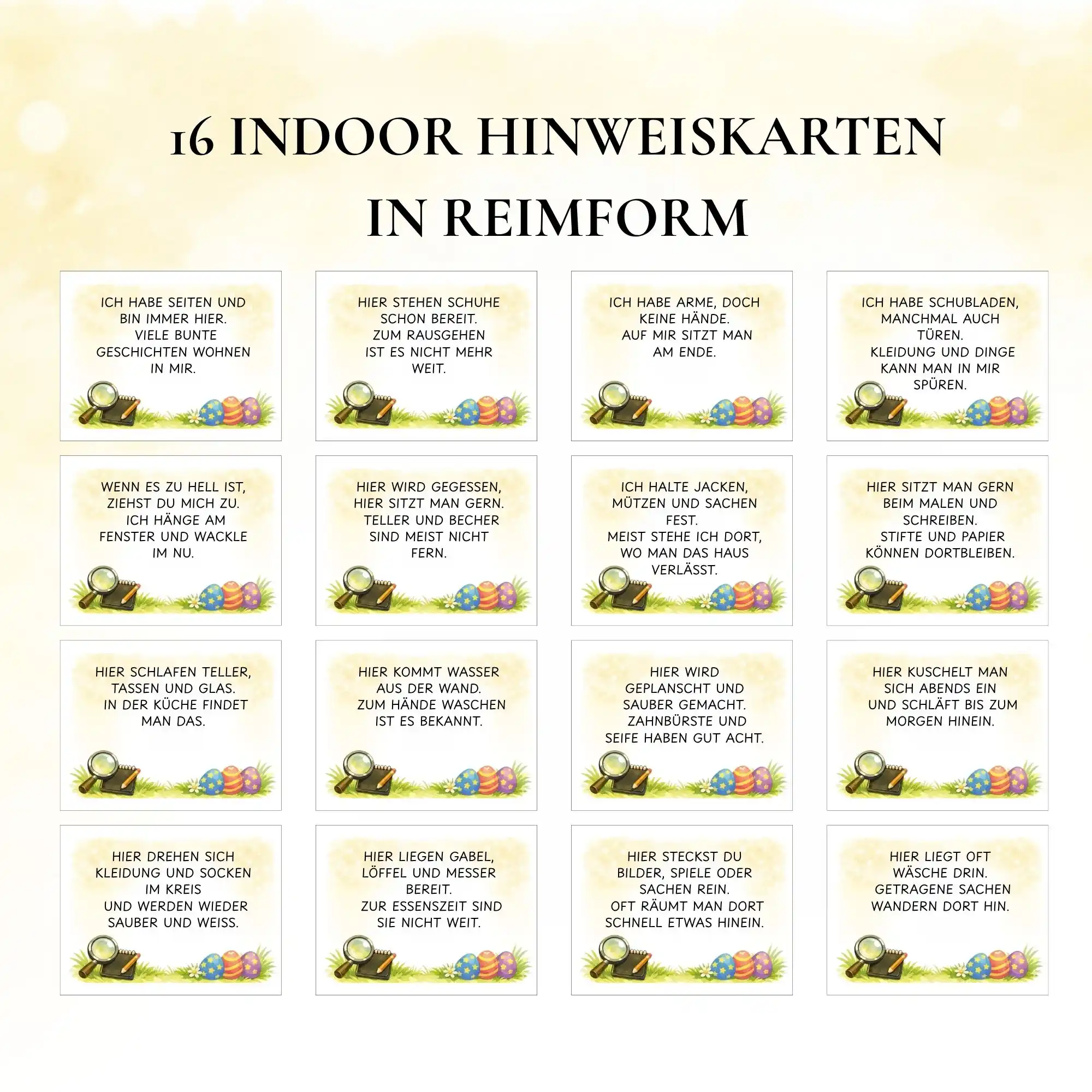 - 1x Hinweise mit passenden Verstecken